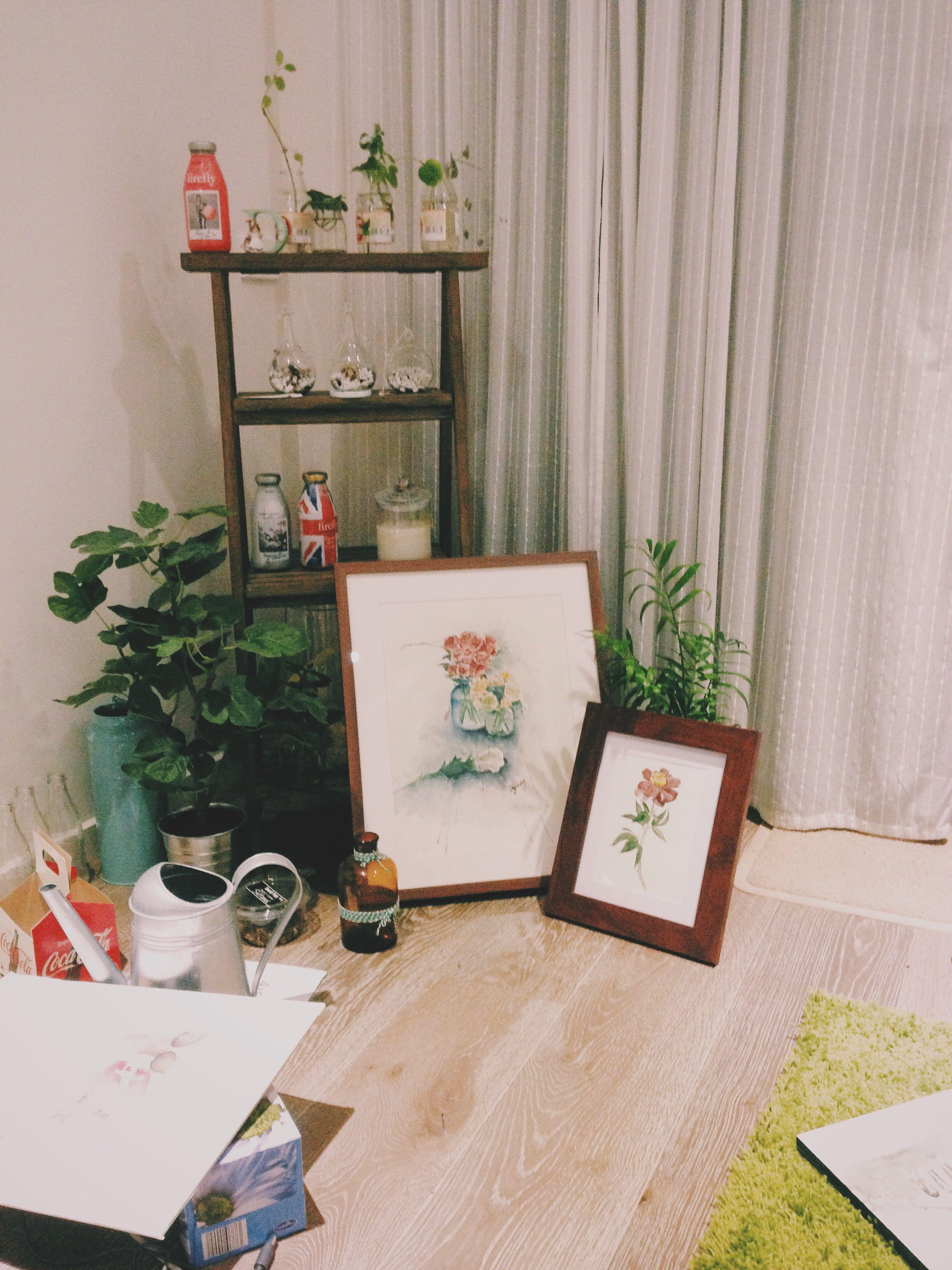 用自己的画装饰的小角落: