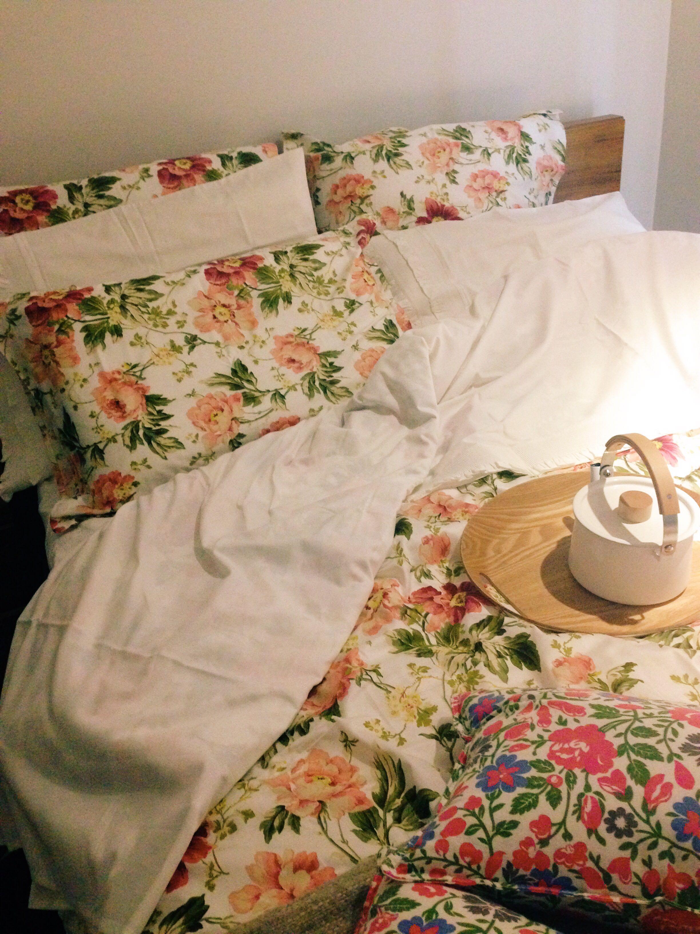 卧室也用自己喜欢的风格布置。喜欢手绘的大花,每天早上起床心情都会好: