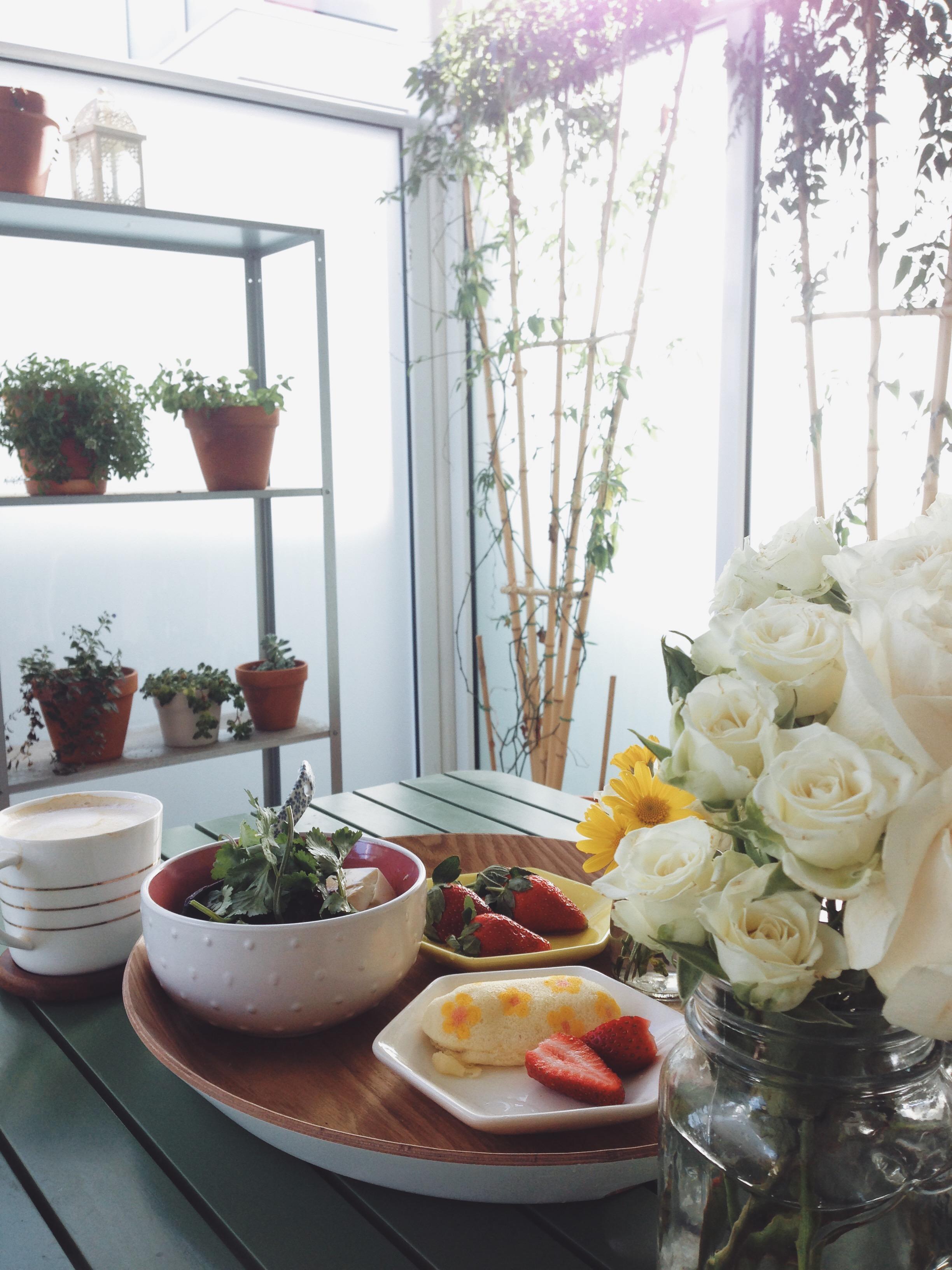 另外最爱的就是在家做早餐。在阳台上的早餐,虽然麻烦,却可以一天好心情。选在阳光明媚的周末: