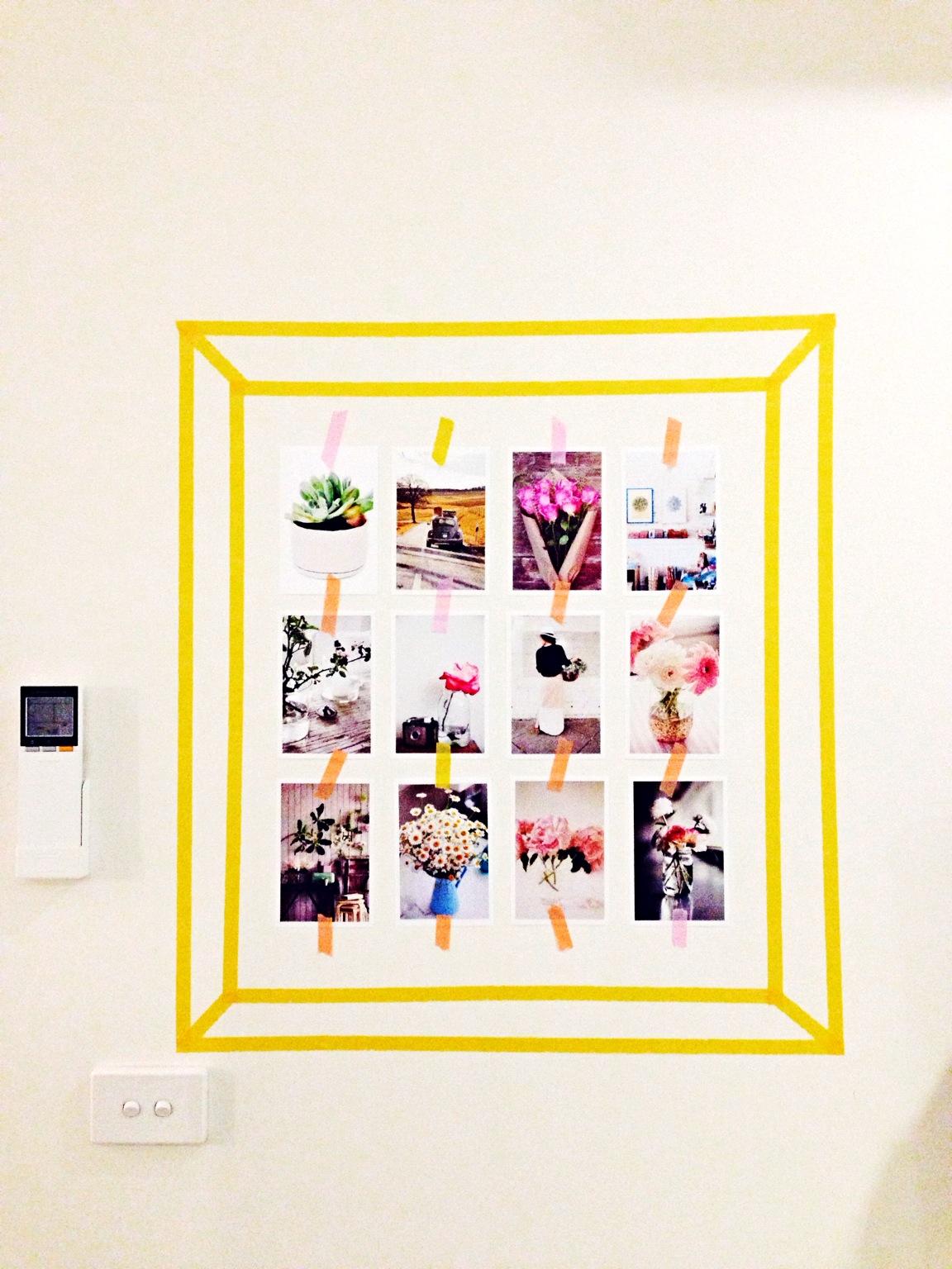 用纸胶带在墙上贴的镜框,都是一些给我灵感的小照片: