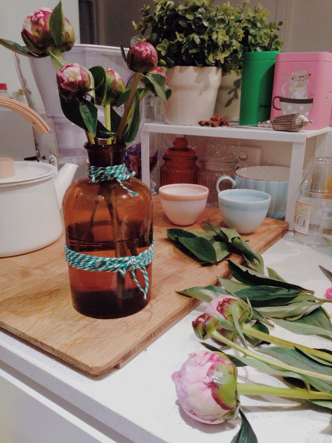 家里实在太小,剪花都是在厨房台子上弄的: