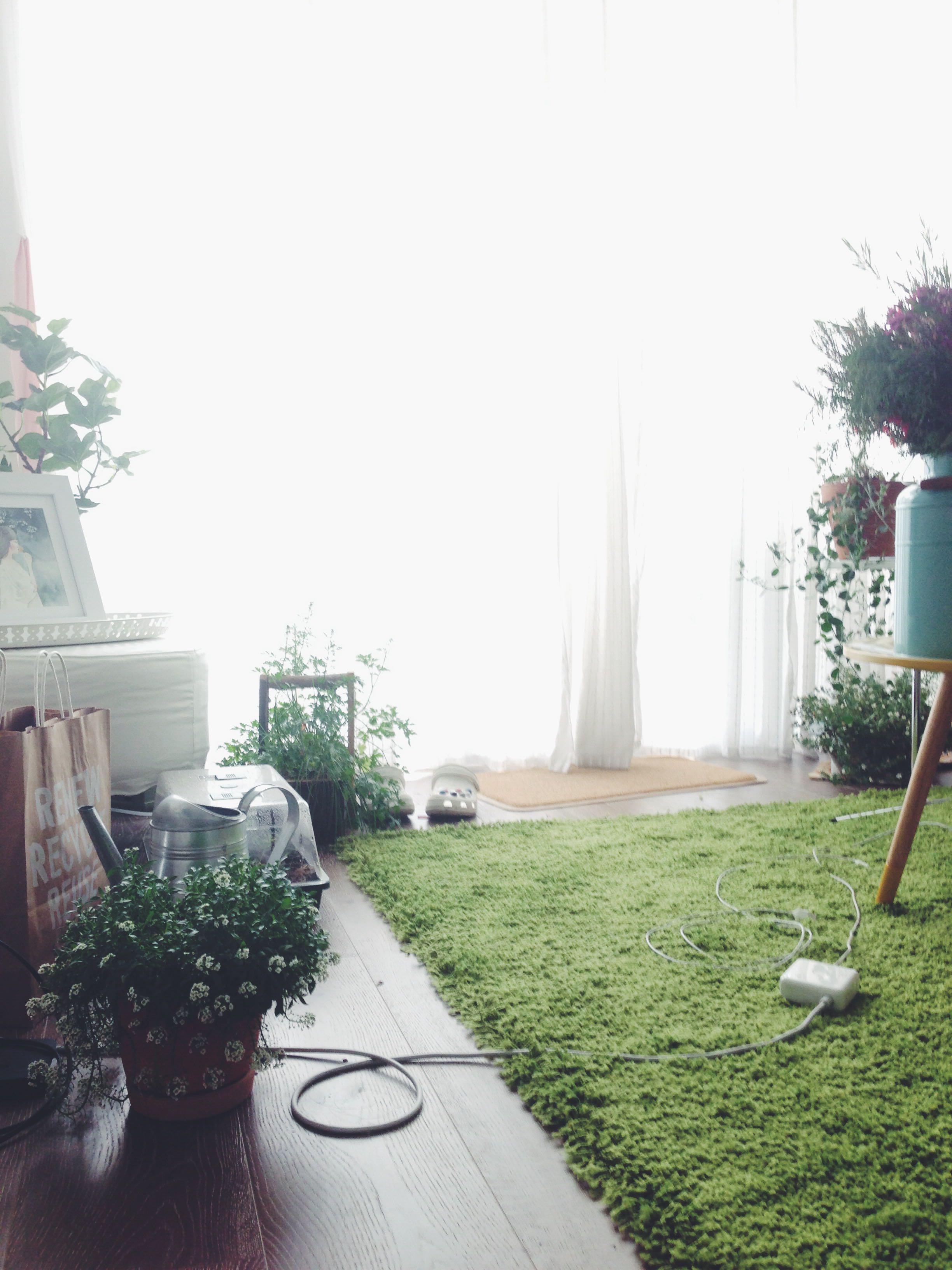 这些植物是夏天气温暴热的时候搬进房间的,平时都放在阳台。觉得好有森林的感觉,不过我也怕虫子,所以不能在房间里养: