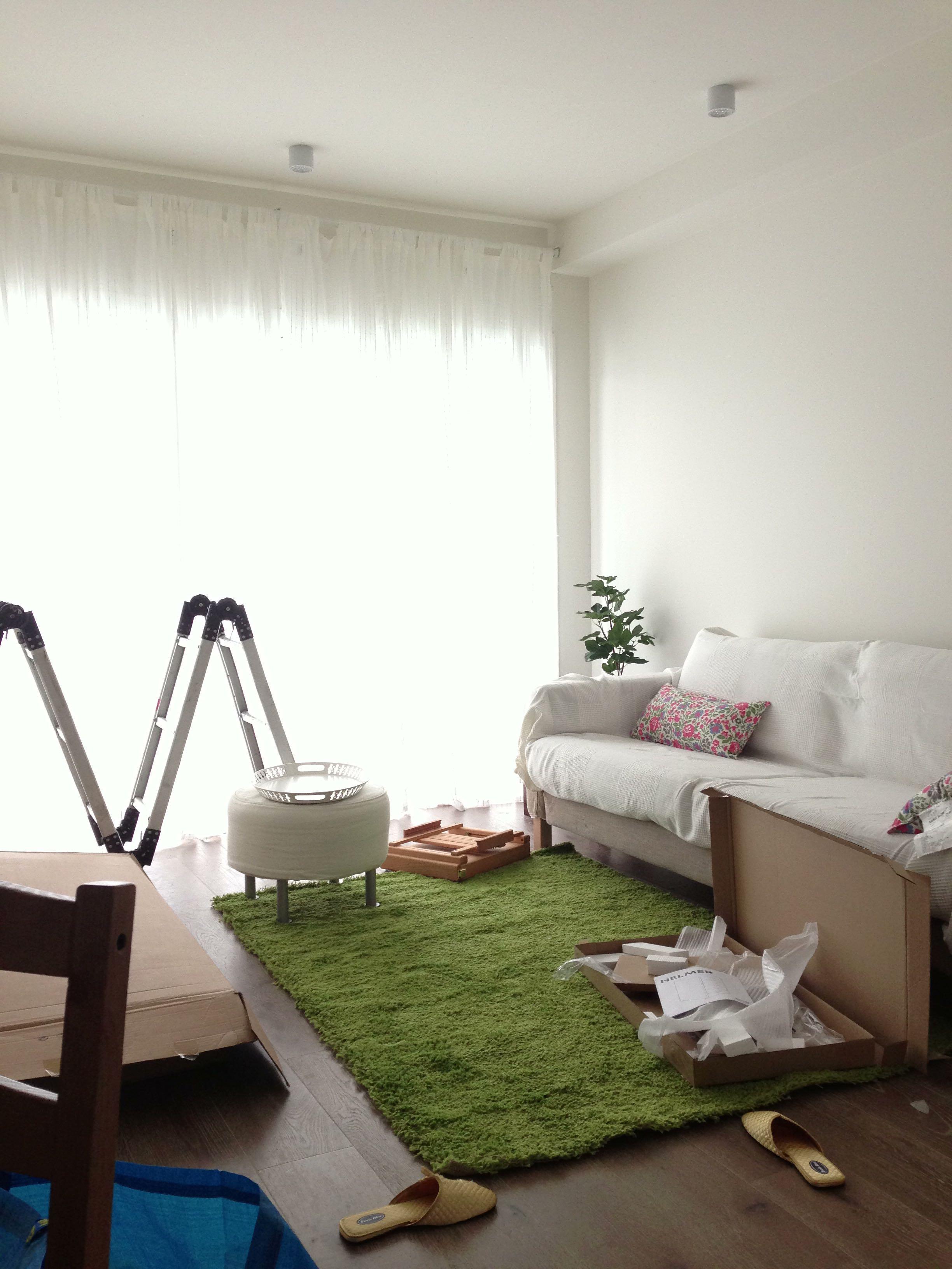 慢慢开始添家具,一开始只有沙发: