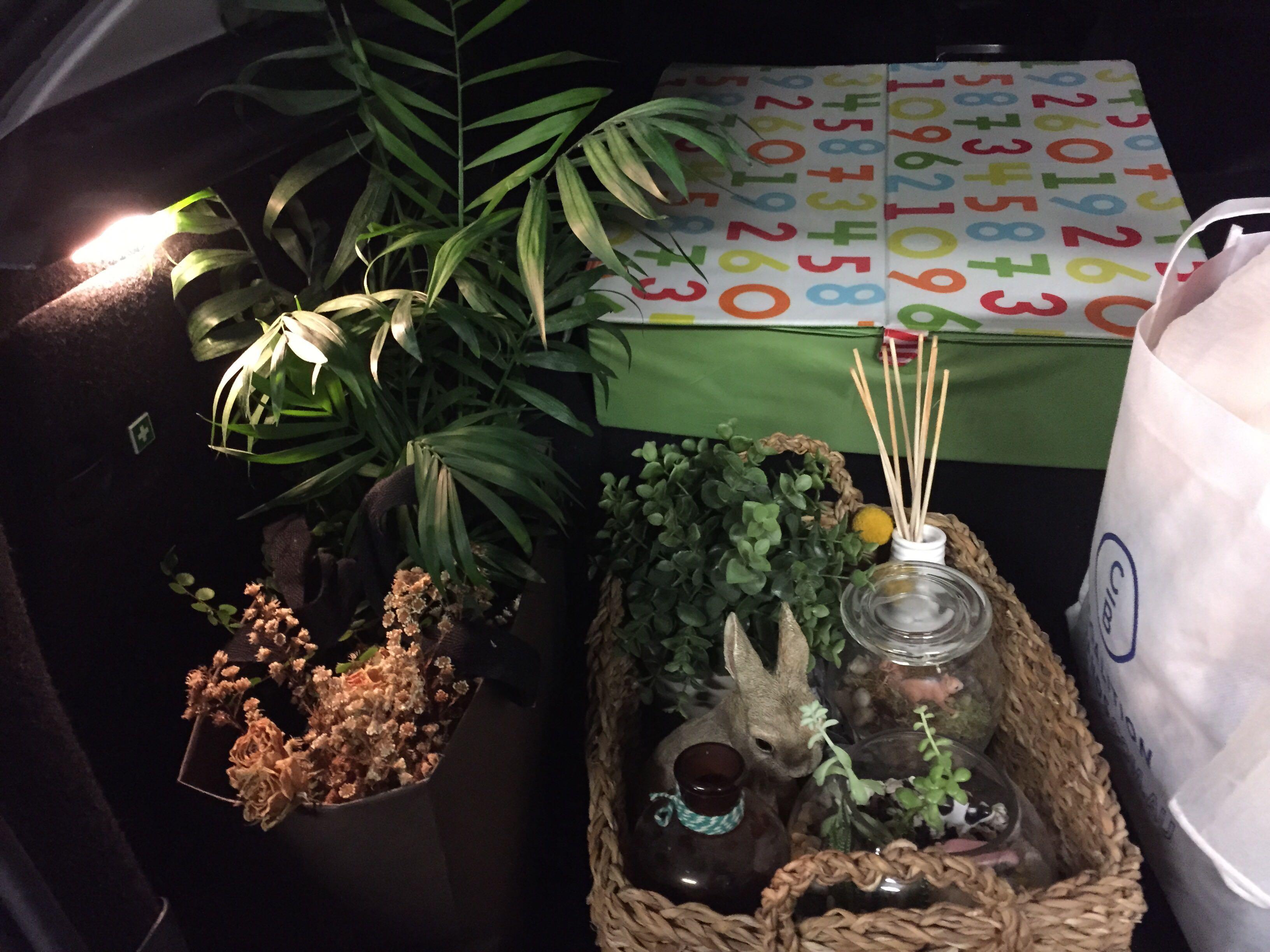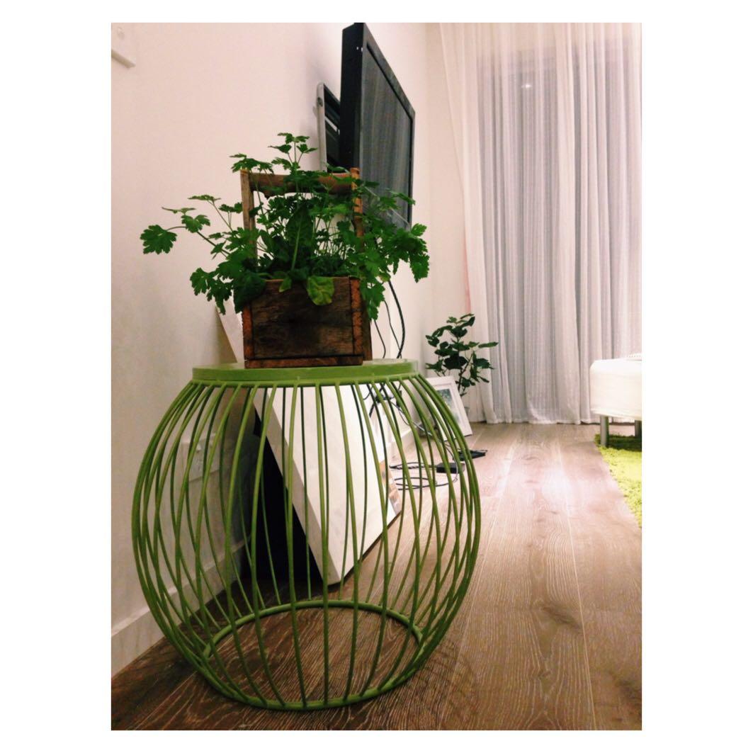 搬进去后简单的制备了一些物件,挑的都是自然色,偏绿。上面木篮子里种的是香菜,既能观赏又能吃: